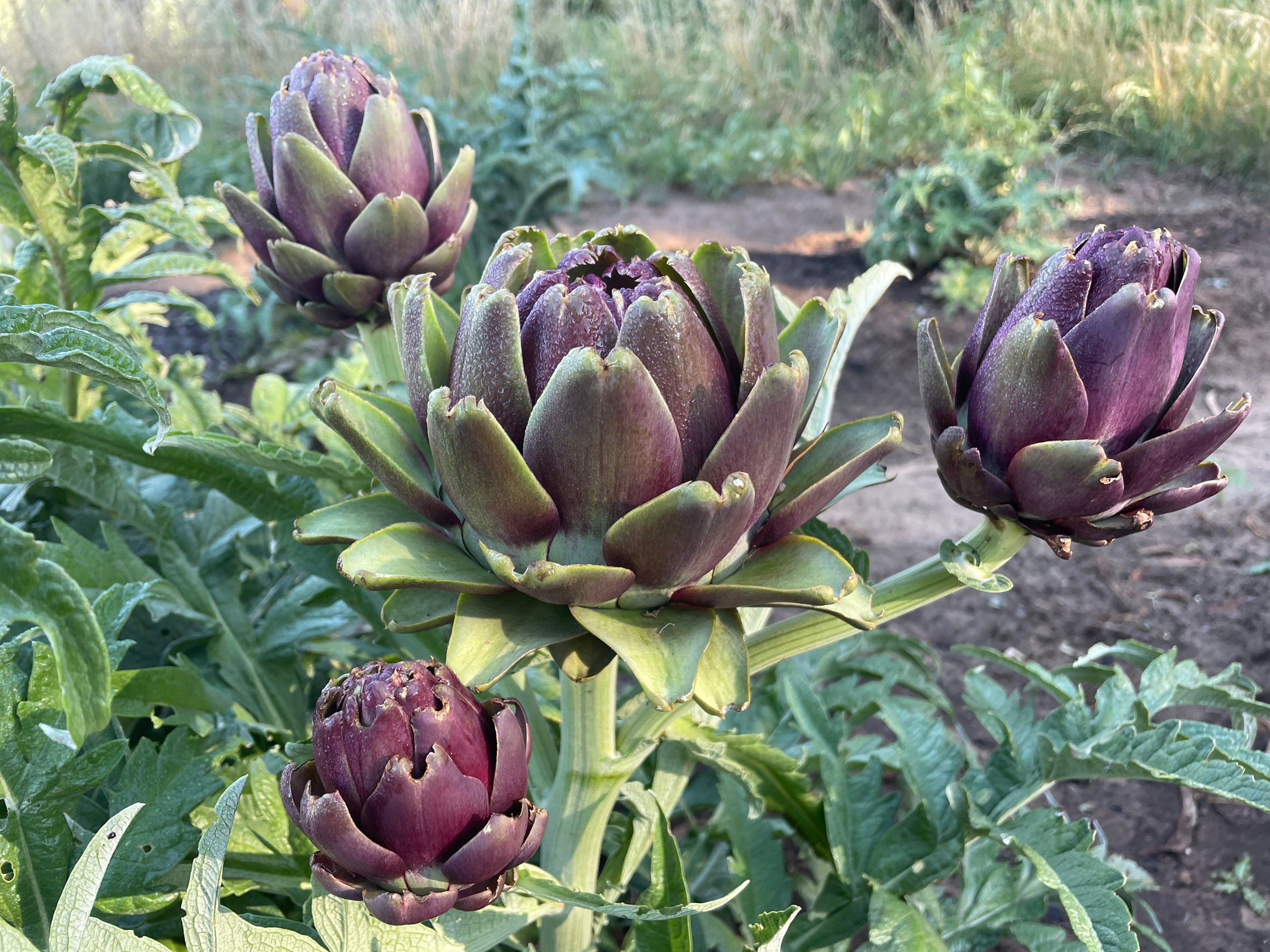 Since 2021, we've been dedicated in growing a variety of Artichokes, (Cynara scolymus) starting from seeds we cultivated ourselves. With over 1,000 plants thriving, our family is passionate about bringing the best artichokes to your table. During the season, you will be able to order fresh Artichokes directly from us or enjoy our prepared Artichokes in jars all year round.