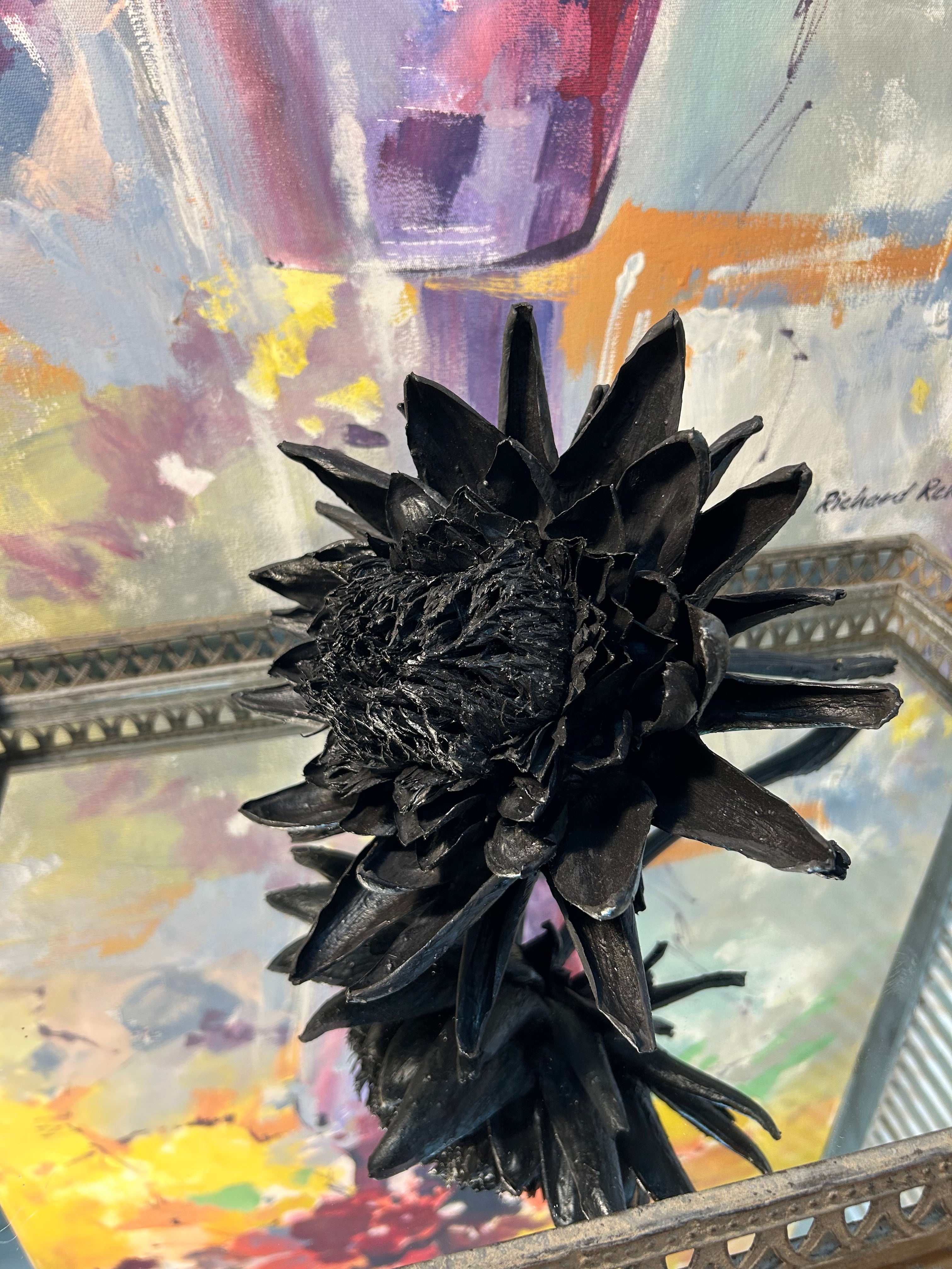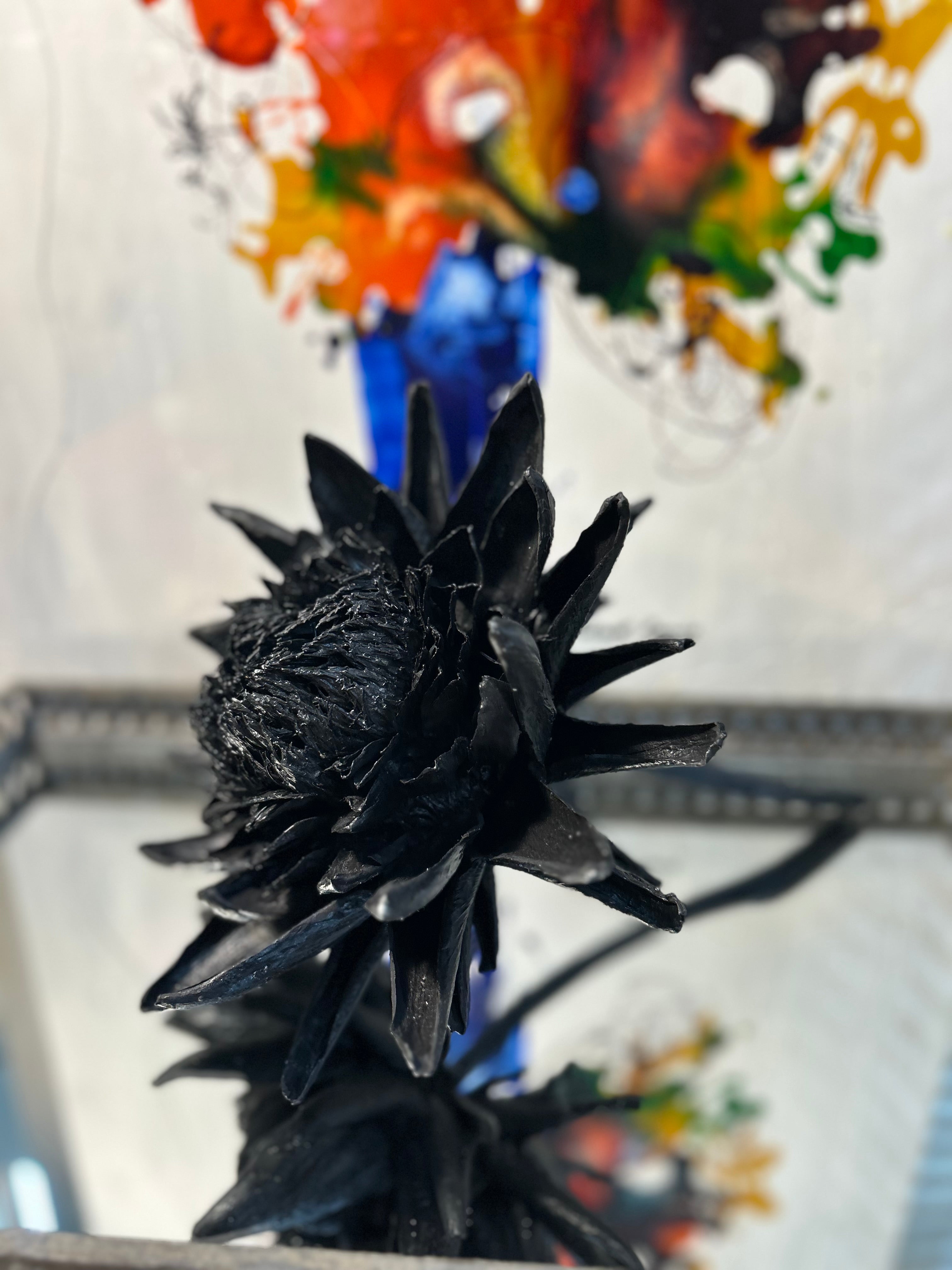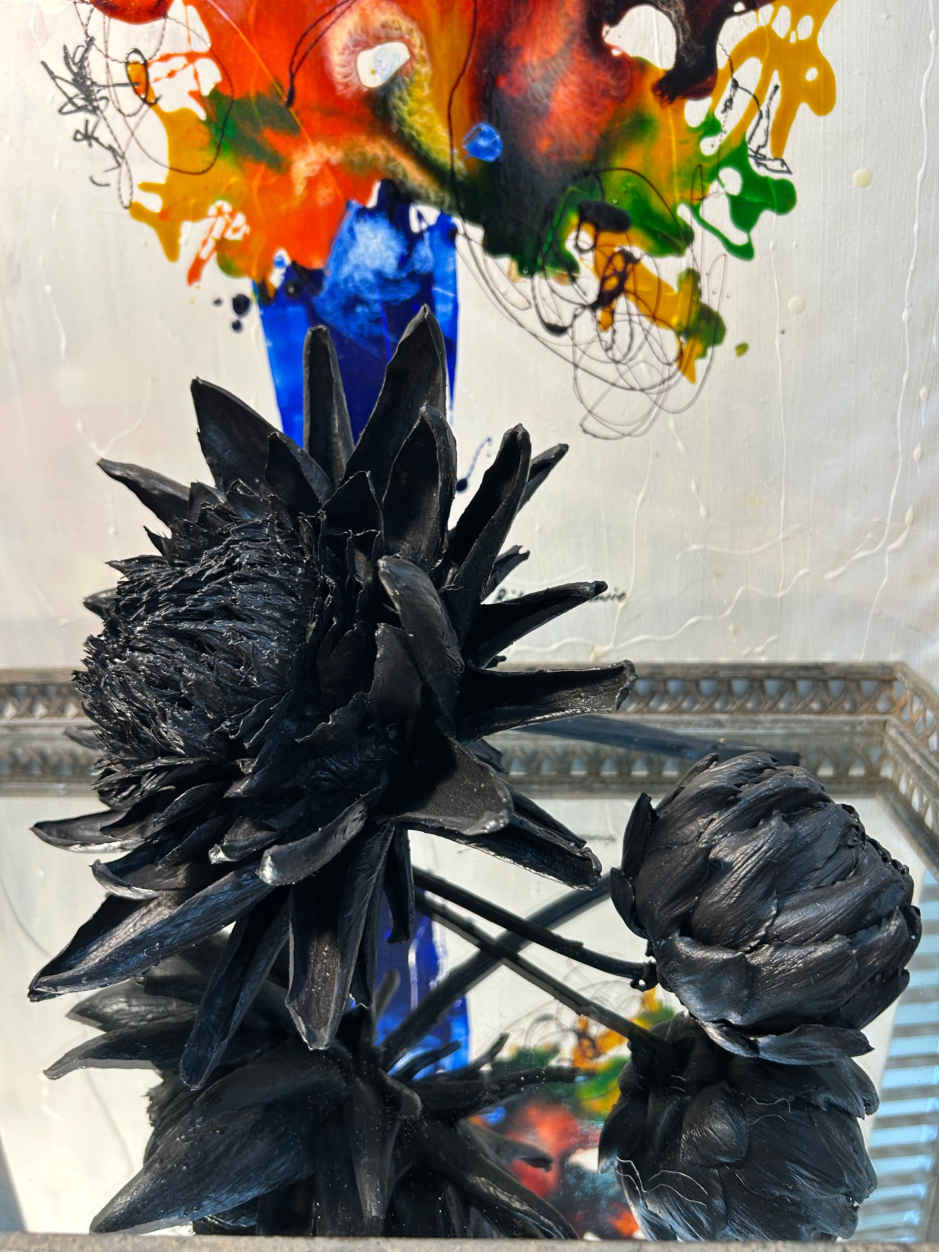 Mysterious, powerful, and impossibly elegant, this fully opened artichoke bloom is cemented in a deep pitch black—an expression of strength, authority, and quiet confidence. Created as a commissioned centrepiece for a corporate office, this sculpture quickly became one of the most sought-after works in the Forever Joy series.