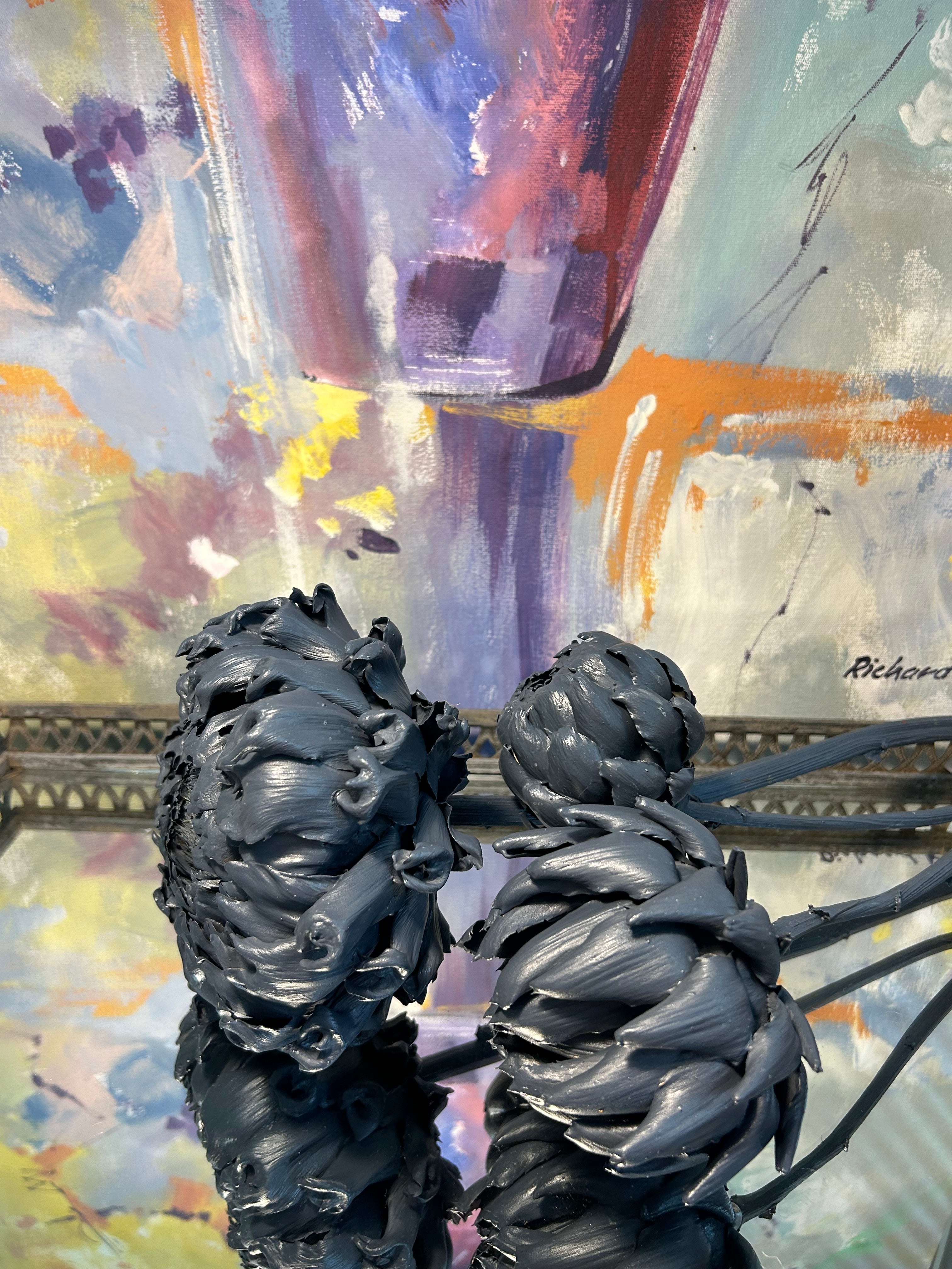 Graceful and commanding in its height, this large closed artichoke bud stands tall on an elongated stem, finished in a tranquil blue that brings a sense of calm and clarity to a space. Though still closed, the form carries a quiet confidence — a reminder that joy does not always announce itself, but can exist steadily, waiting with intention.