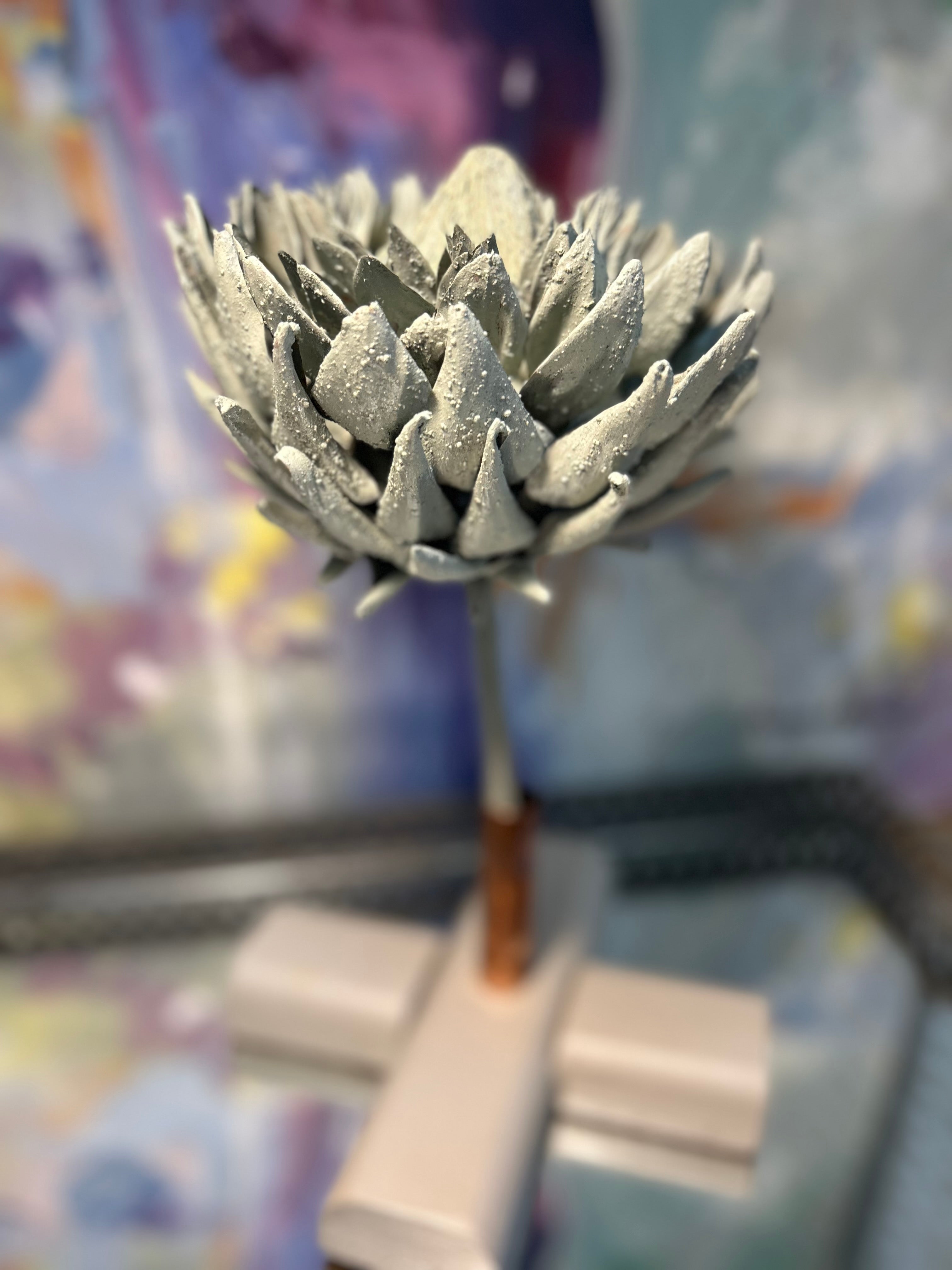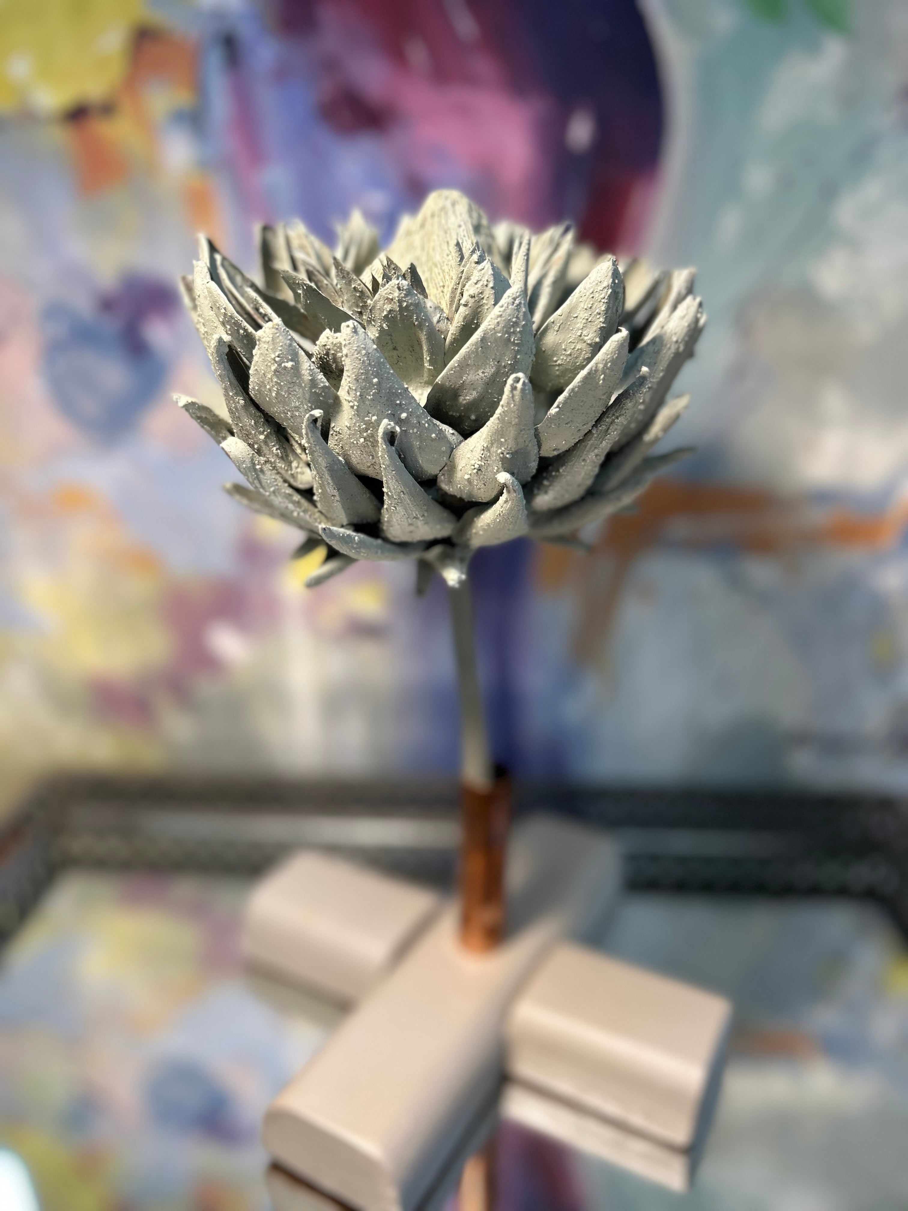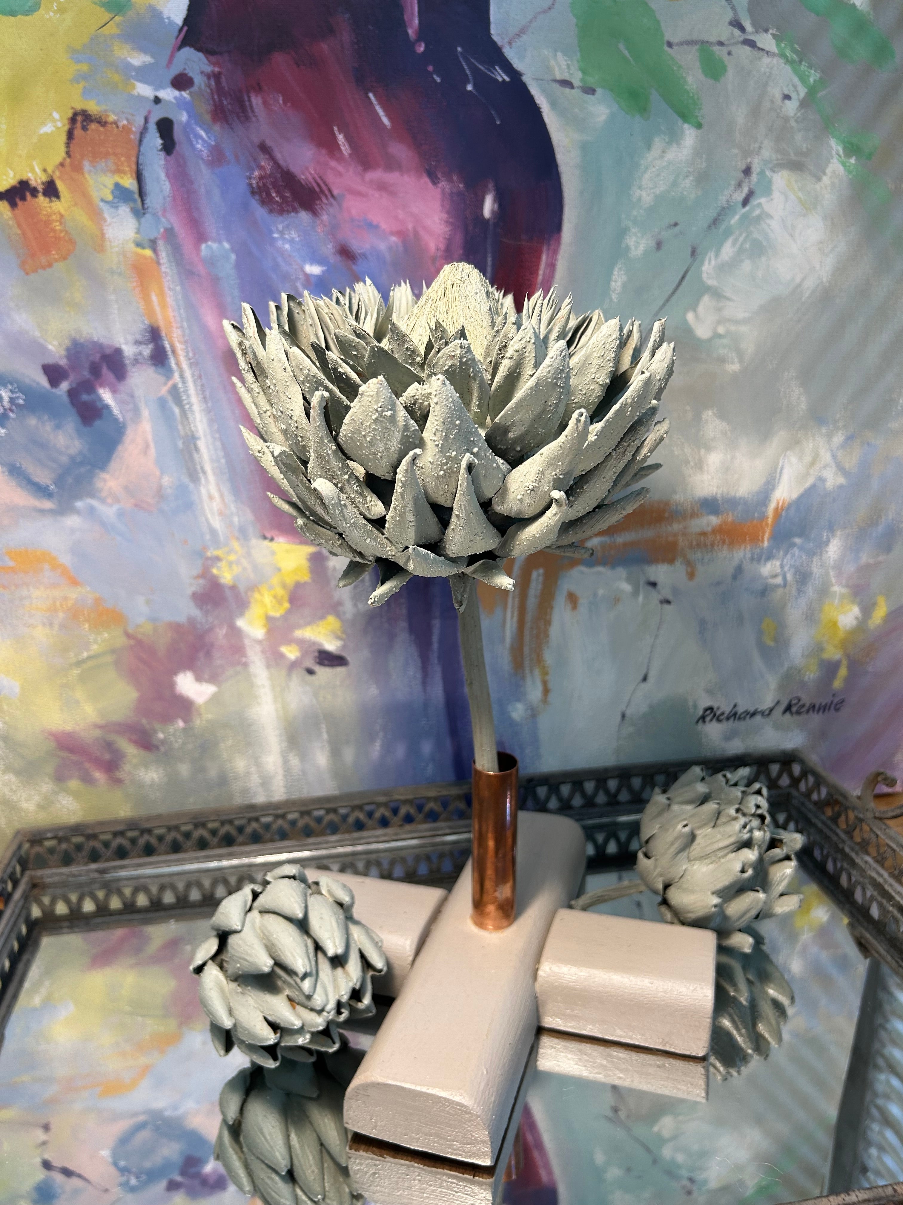 The artichoke flower is remarkable for its ability to bloom even after it has fallen or been removed from the stem — a quiet yet powerful metaphor for perseverance and renewal. Displayed in the home, this sculpture serves as a daily reminder that growth and flourishing are still possible, even in unexpected or challenging circumstances.