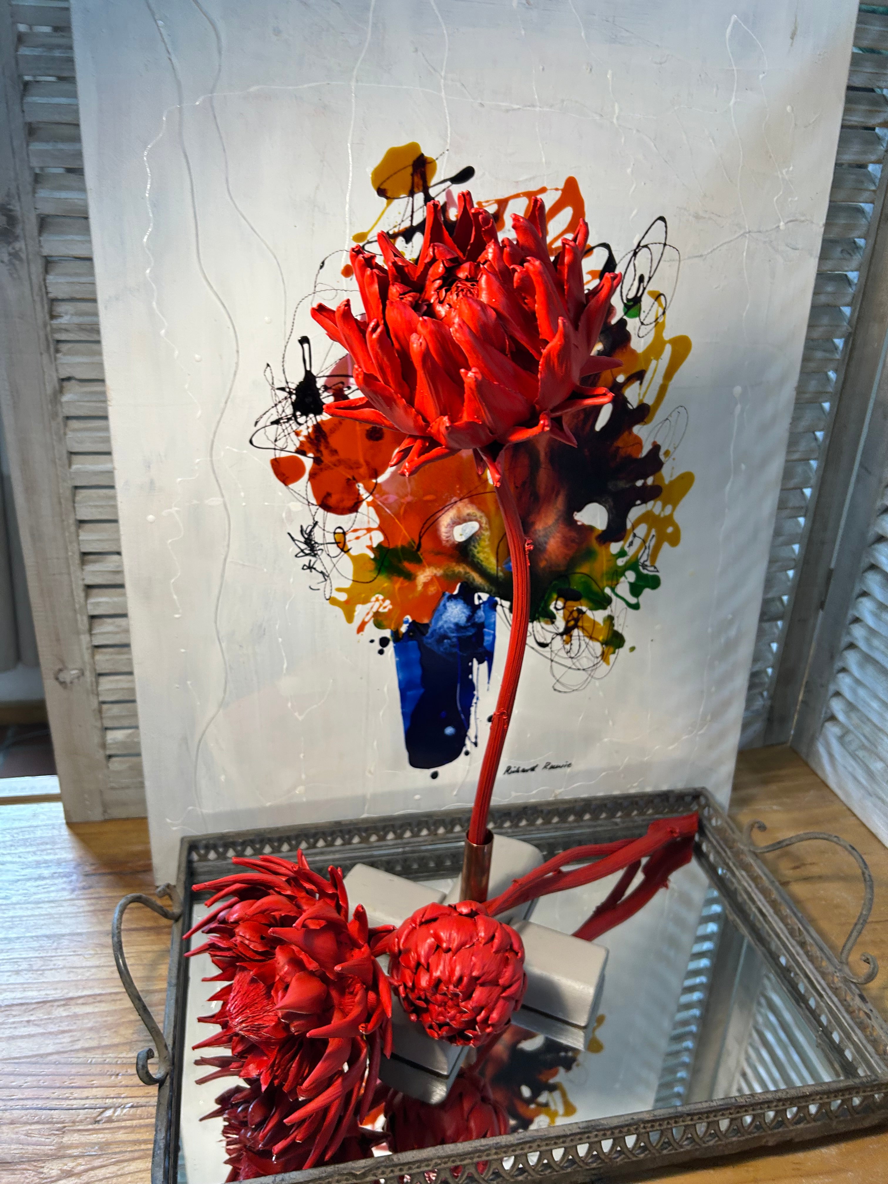 Forever Joy Artichoke Sculpture — Fiery Red Bud Large | 15 cm diameter | 57 cm tall including stem
