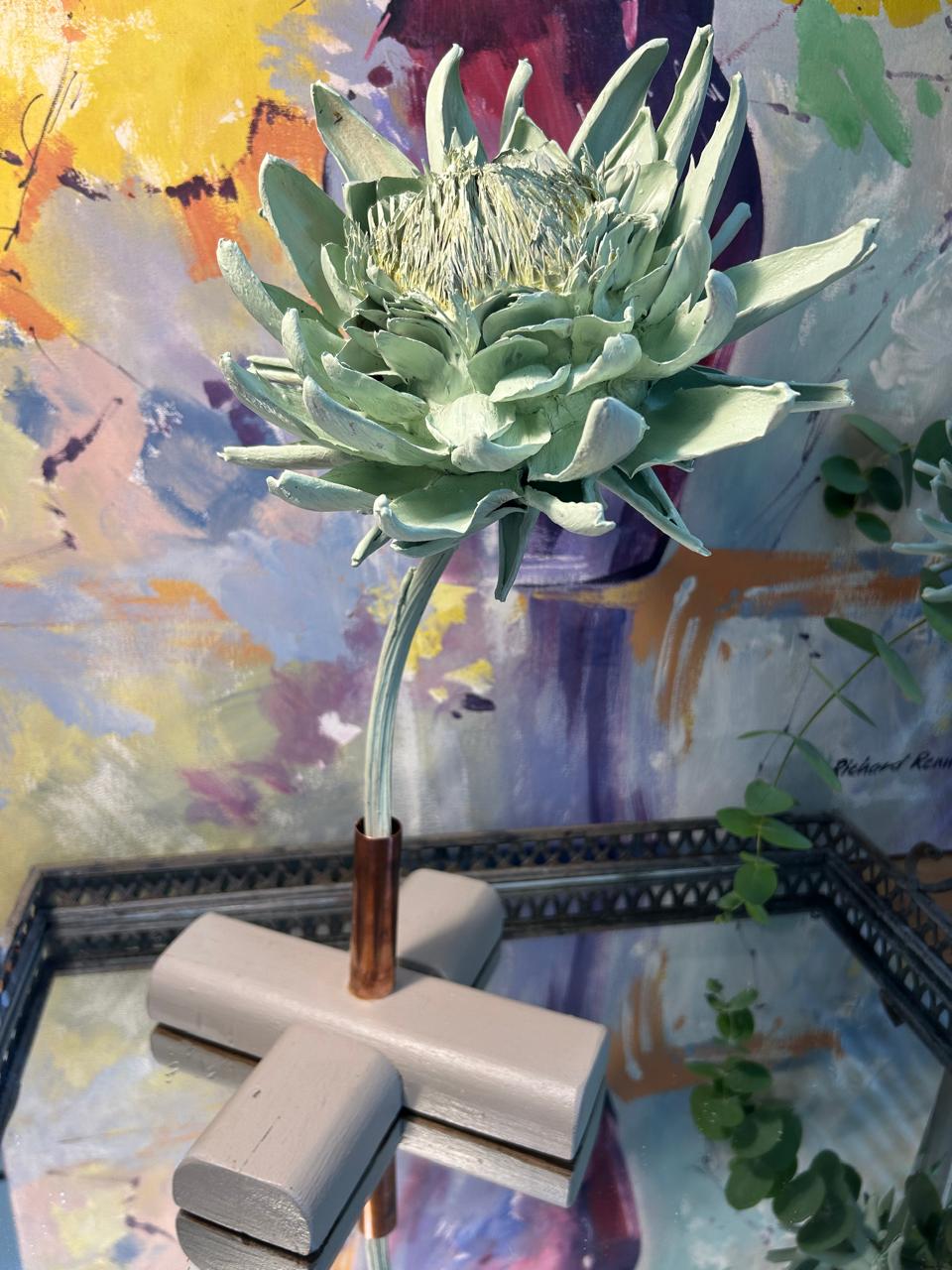 Forever Joy Artichoke Sculpture — Mint Green perfectly open Bloom