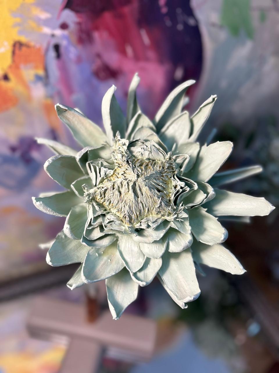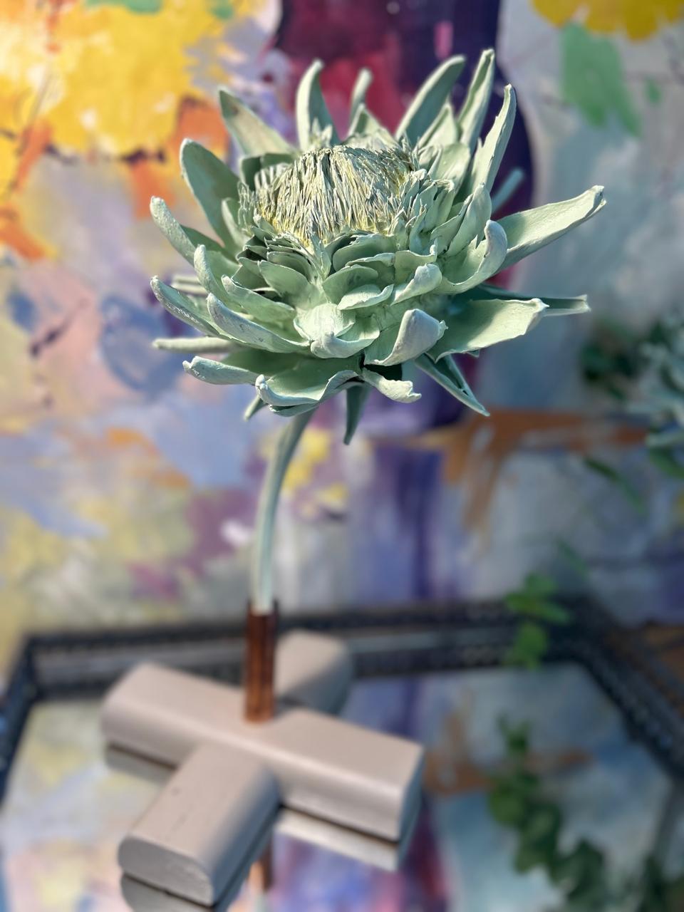 The artichoke flower is a powerful symbol: resilient, patient, and unwavering in its journey towards the light. It teaches us to grow where we are planted, to remain strong through changing seasons, and to open fully when the time is right. This sculpture serves as a daily reminder to strive for those same qualities — perseverance, authenticity, and grace.