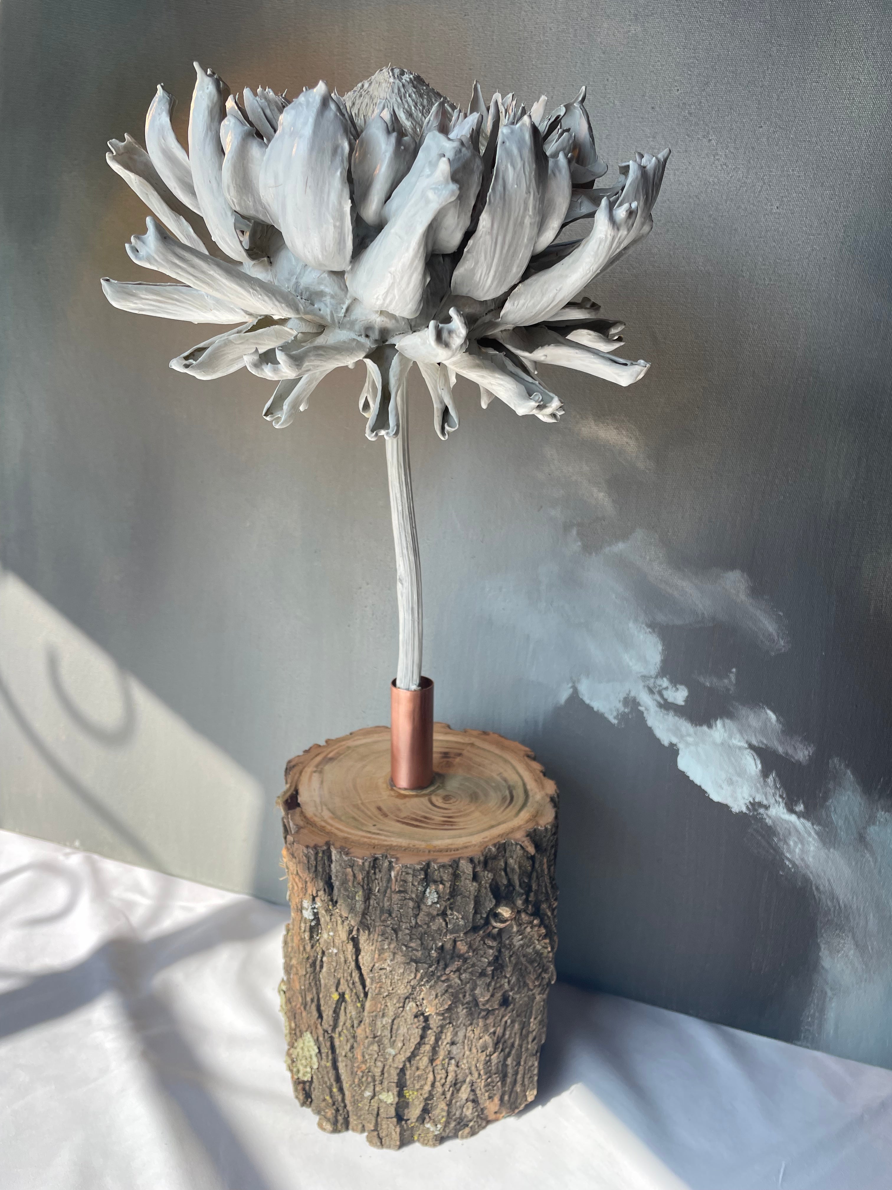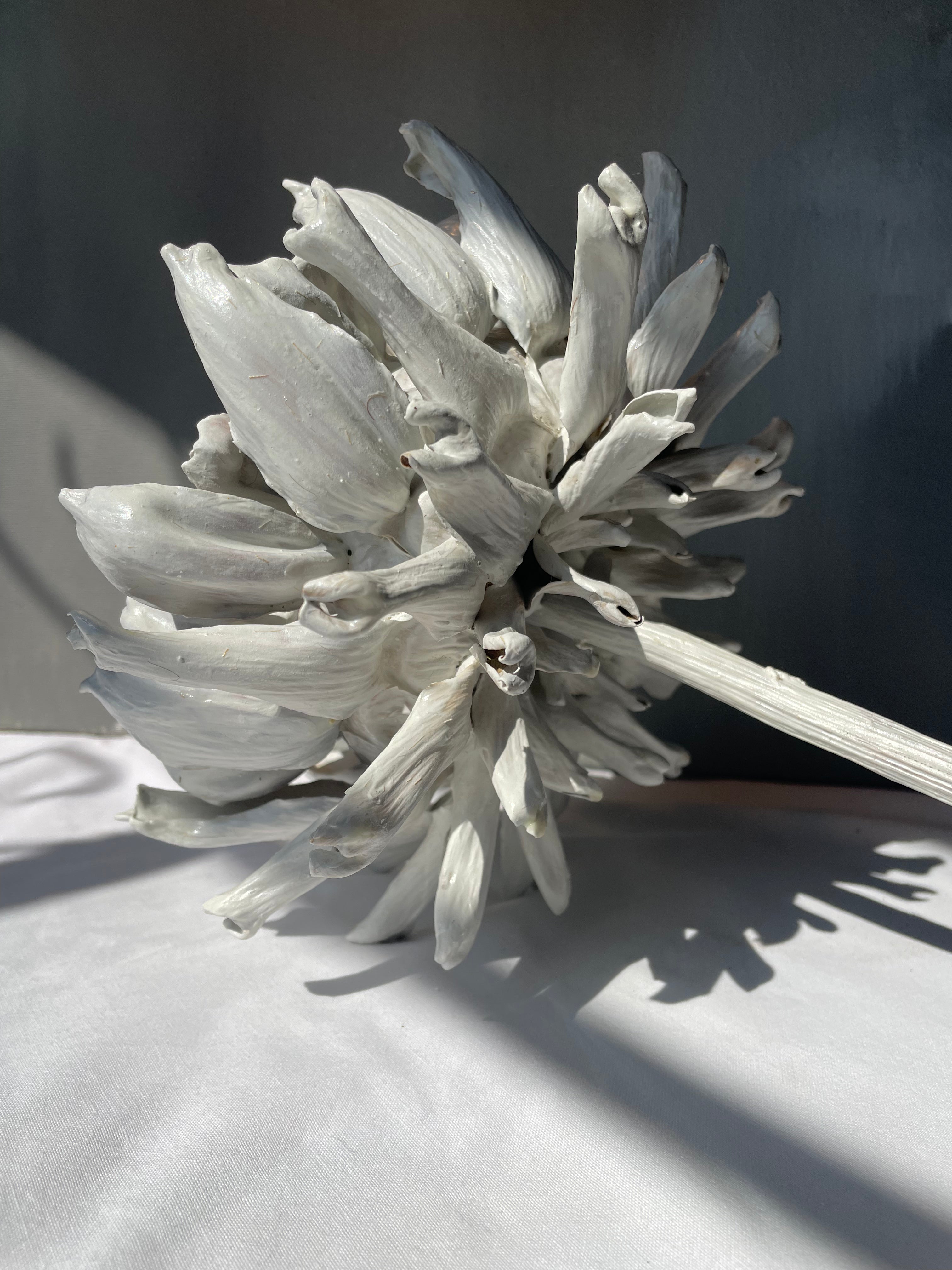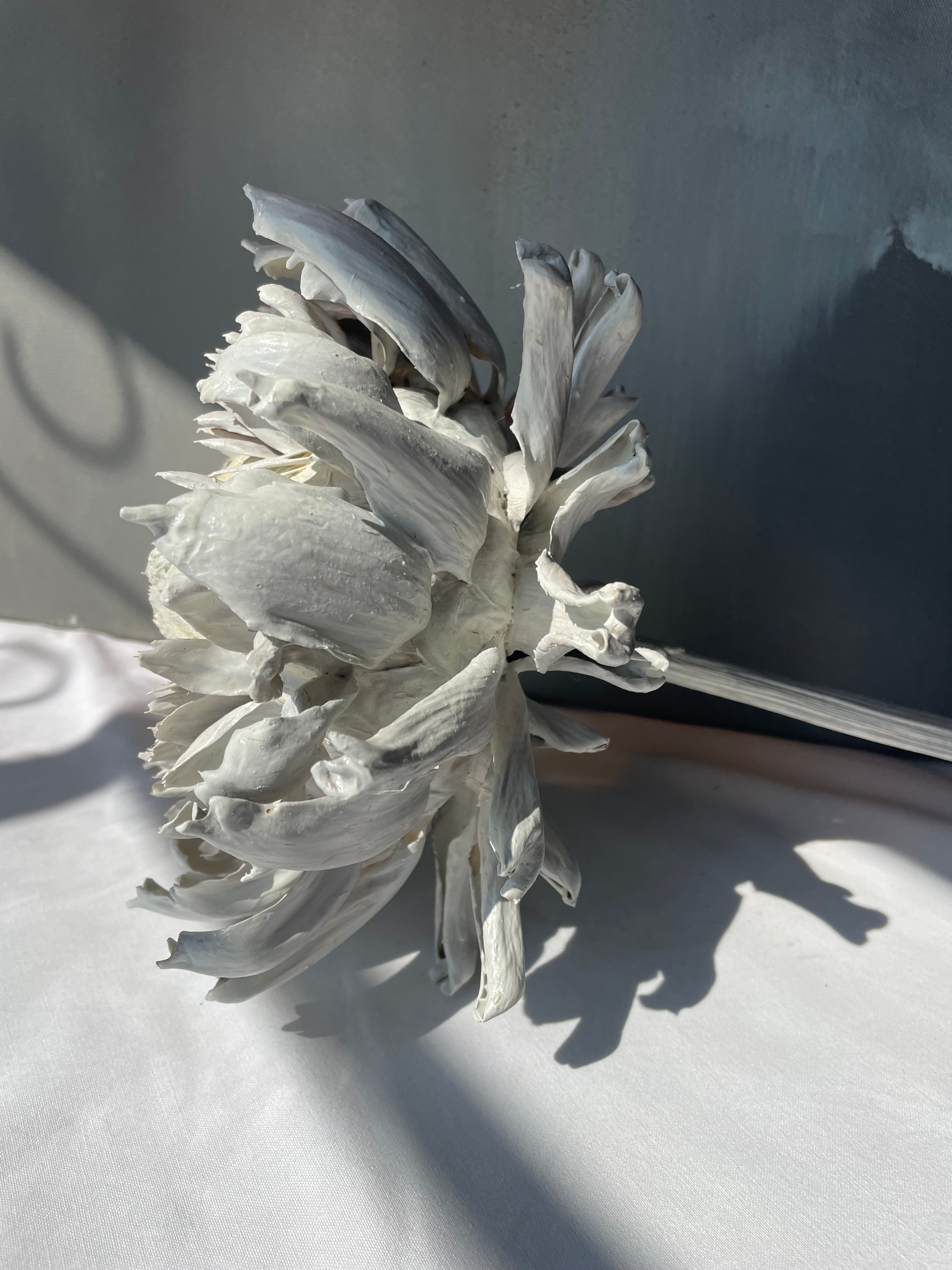 Delicate, sculptural, and quietly captivating, this soft white artichoke sculpture brings an understated elegance to any interior. With its gently layered, heart-shaped leaves, the bloom has an almost cloud-like quality — reminiscent of a perfectly whipped meringue — light, airy, and beautifully textured.